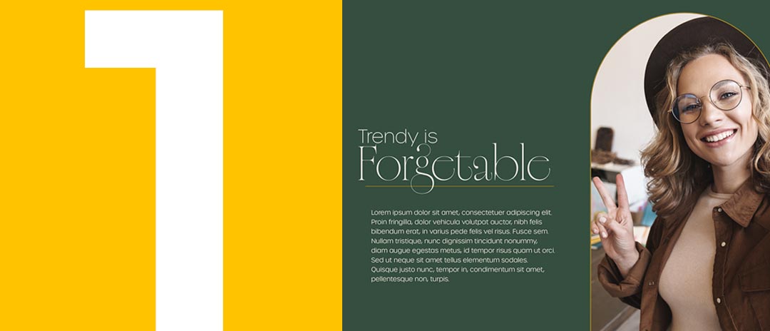 - If your brand identity doesn’t include green and brassy gold, don’t flood your website with those past-trendy colors.